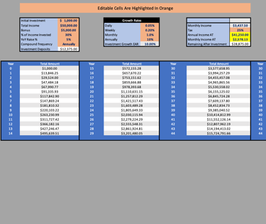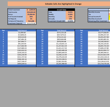 Put in your; income, savings rate, growth rate, and see how your investments will grow over the course of your life.